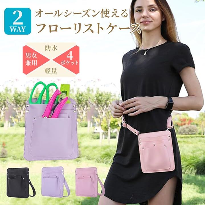 ガーデニングポーチ シザーケース 剪定バサミ はさみ ホルダー おしゃれ 腰袋 花屋 園芸 庭 作業用 PUレザー フローリストケース