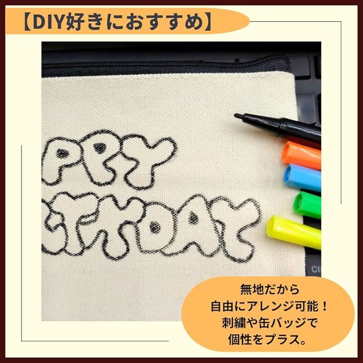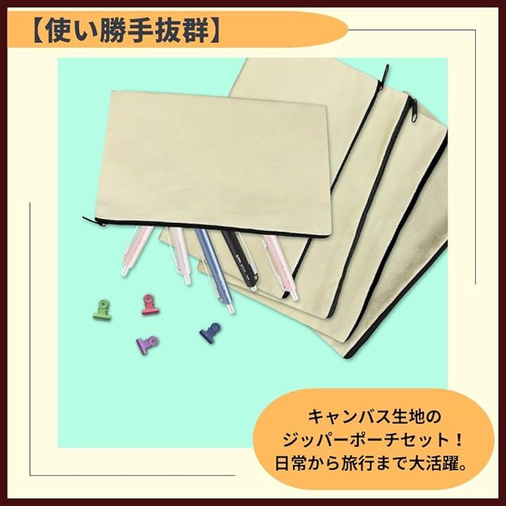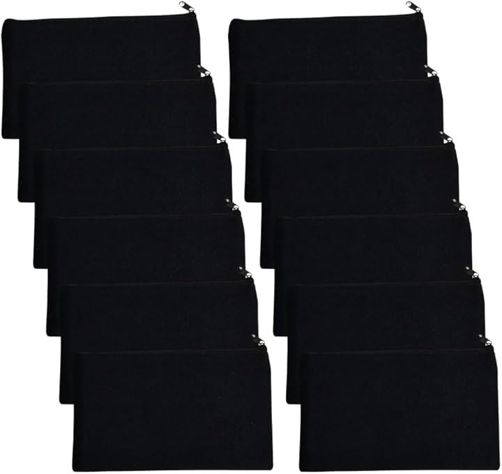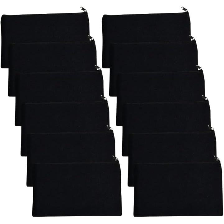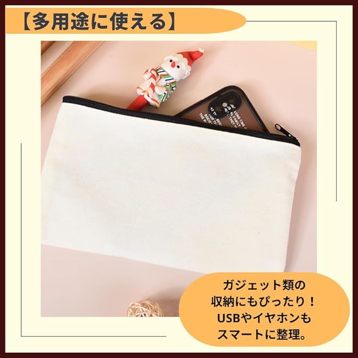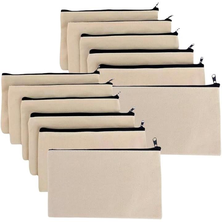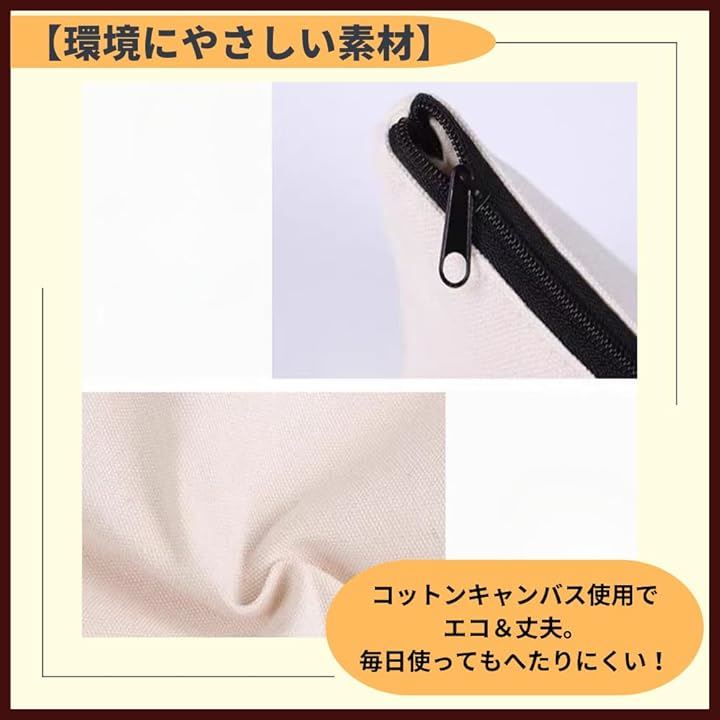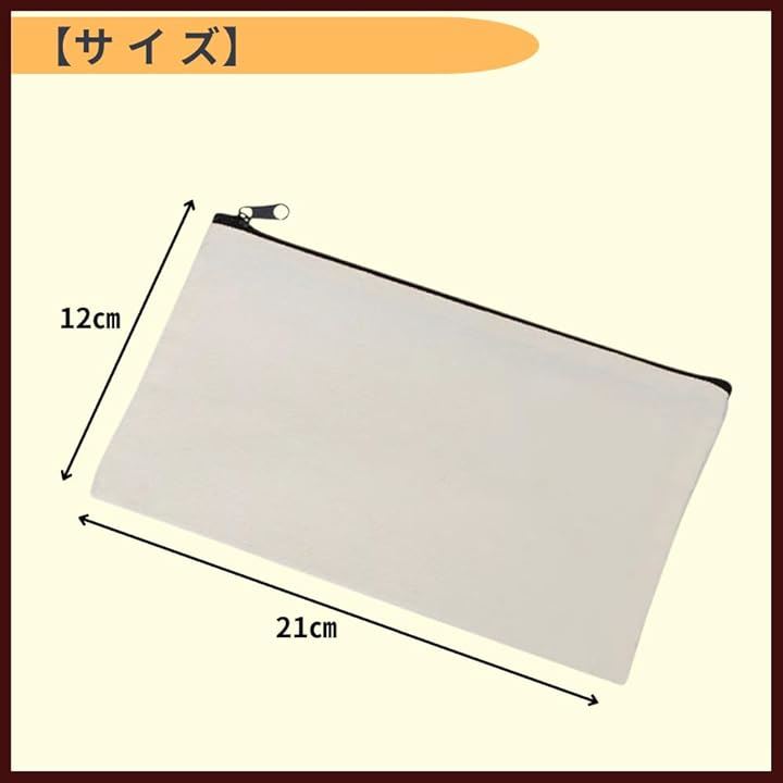 ポーチ 無地 キャンバス 小物入れ ジッパー 12cmx21cm 12枚セット