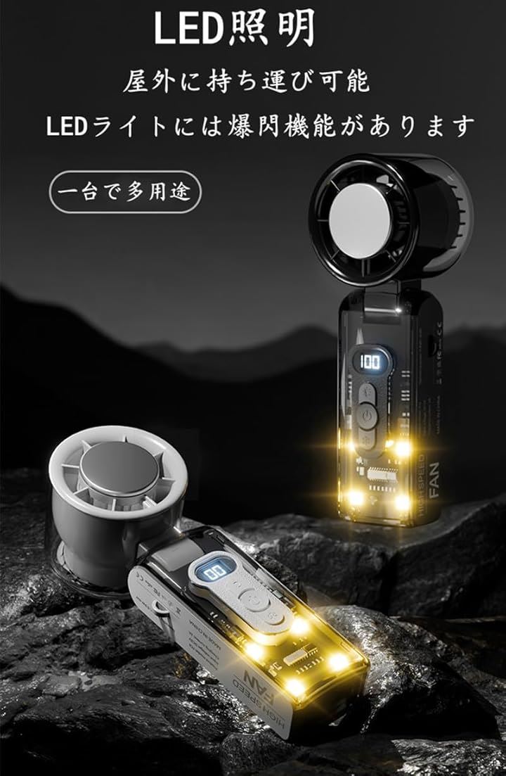 Amblive ポータブルファン 100段階無段階風量調整 折りたたみ式&LEDライト付き 3600mAh大容量バッテリー サイバーパンクデザインで室内・アウトドア両用冷感ファン |