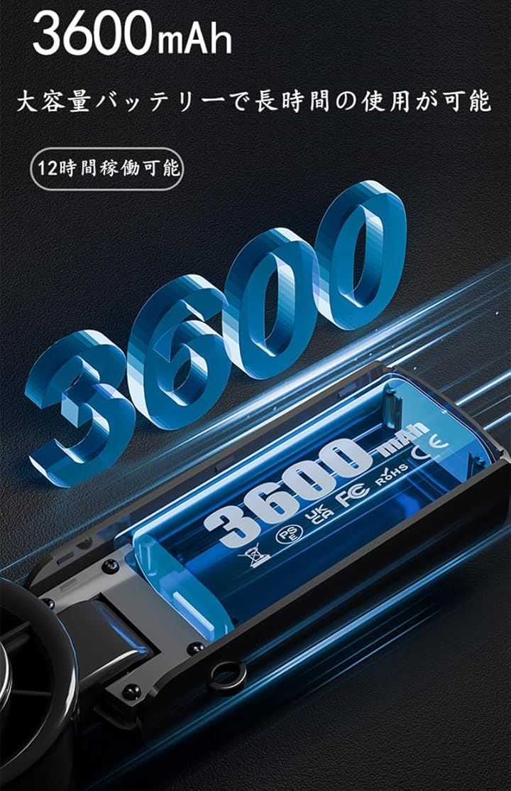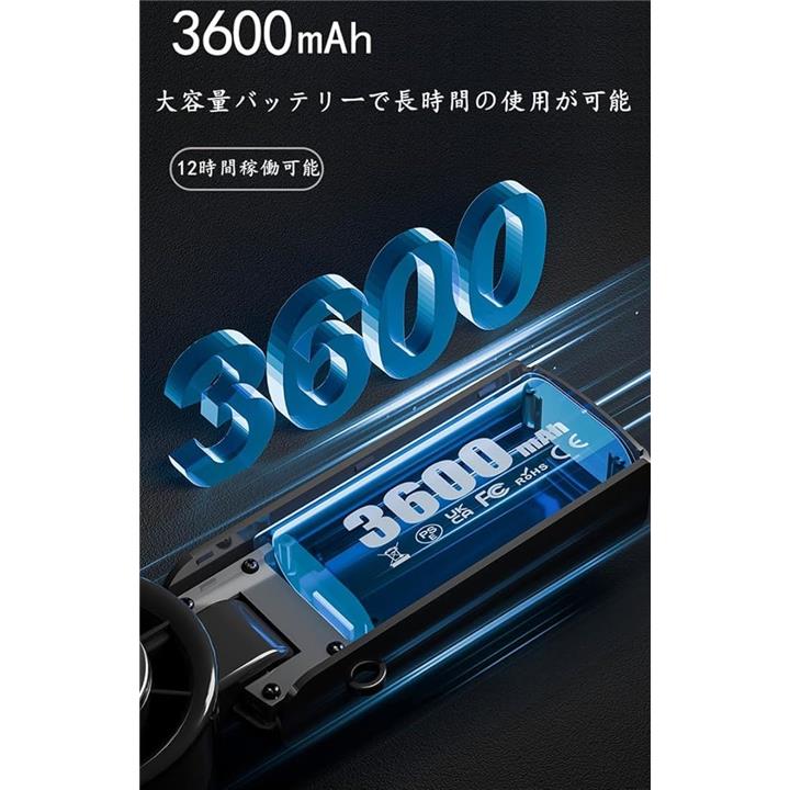 [USB Type-C充電式ファン LCDディスプレイ付き] 3600mAhの大容量バッテリーを内蔵し、繰り返し使用できる充電式ファンです。