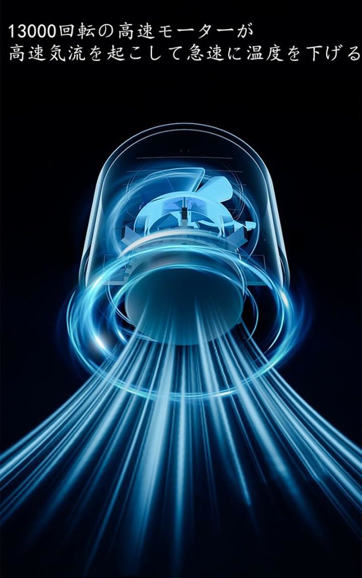 [100段階超高速・大風量強力ファン] 高速回転するモーターは13,000rpmに達し、360度スパイラル強風供給を実現。