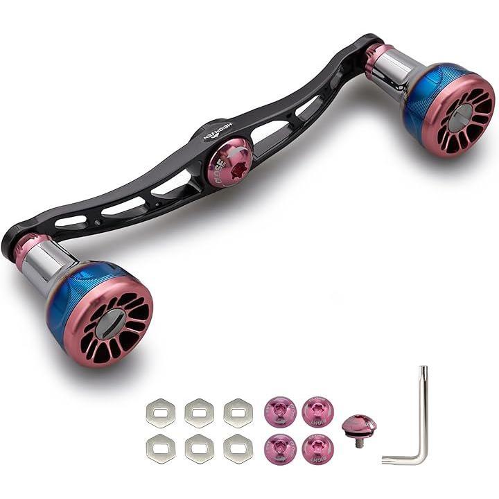 HEIGHTEN V2.0 105/115mm ベイト リール ハンドル 航空アルミ製 シマノ ダイワ アブガルシア 通用 Engn series (ブラック&桜ピンク, V2.0-105mm) (1079) |