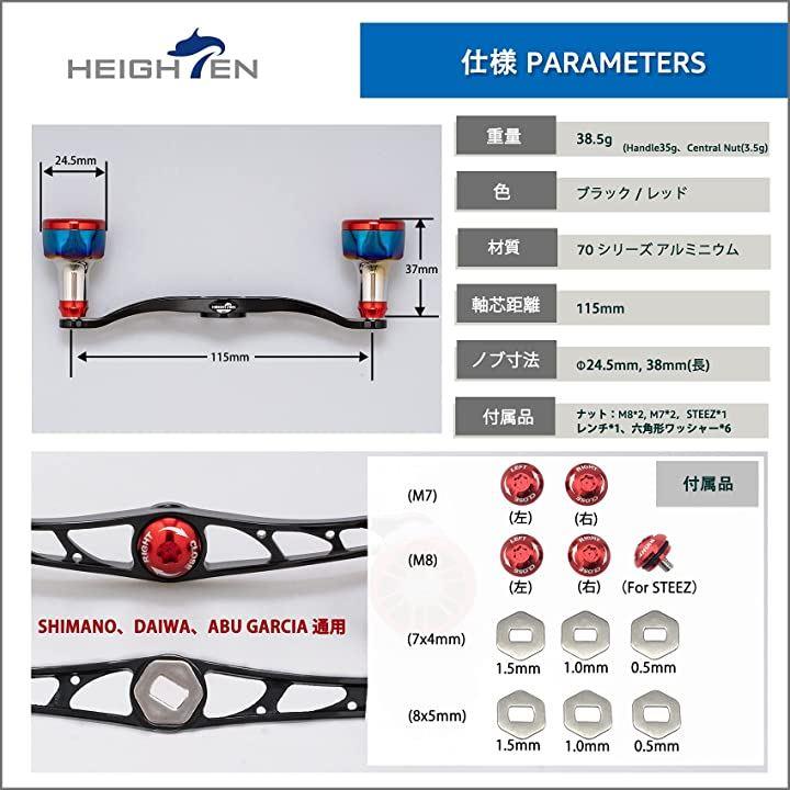 HEIGHTEN V2.0 105/115mm ベイト リール ハンドル 航空アルミ製 シマノ ダイワ アブガルシア 通用 Engn series (レッド, V2.0-115mm) (0190) |