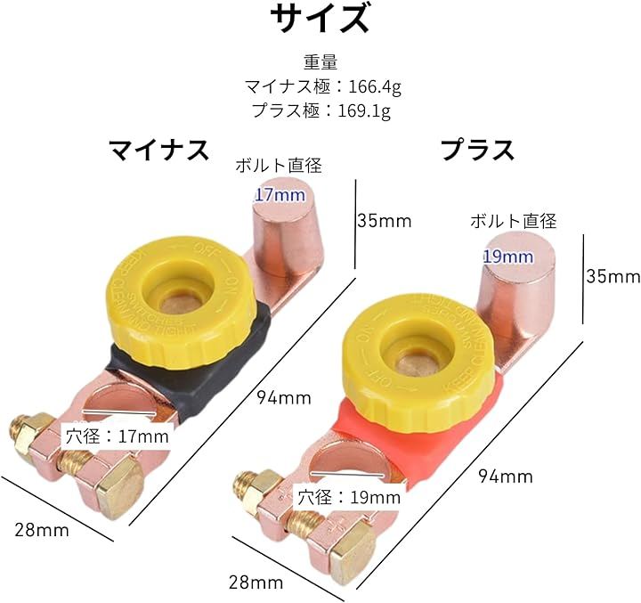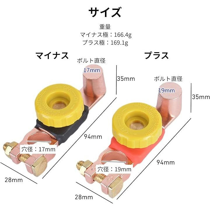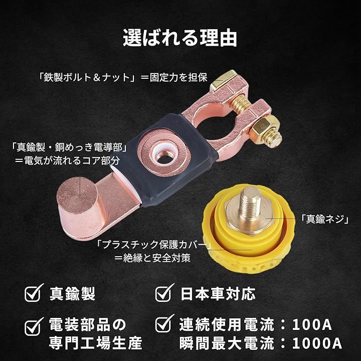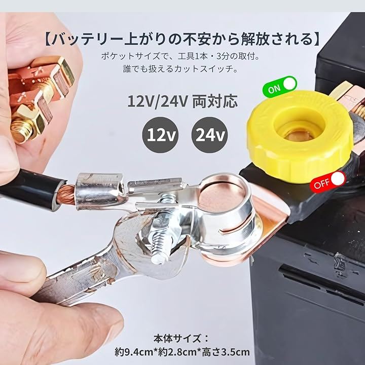 バッテリーカットターミナル 真鍮 12V/24V対応 暗電流 バッテリー上がり防止 車 バイク キャンピングカー用 オフスイッチ カットオフ