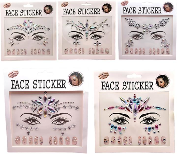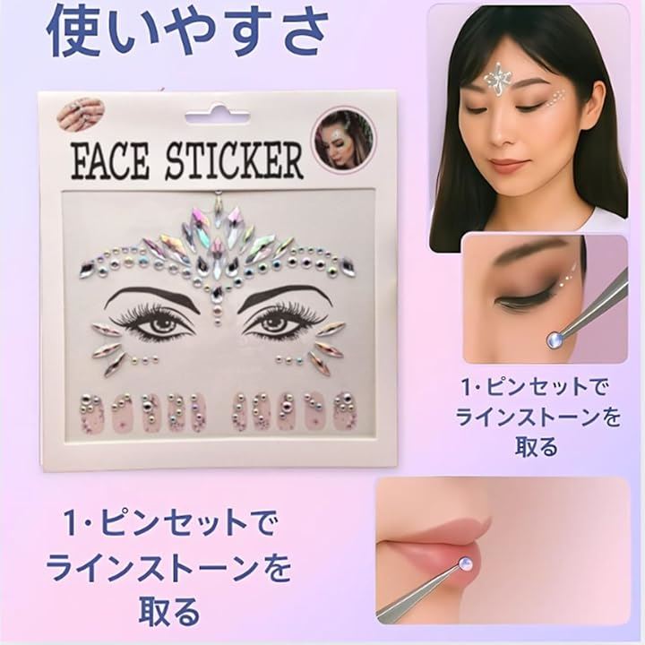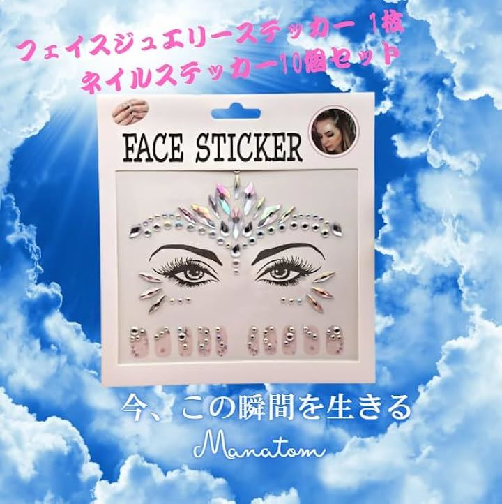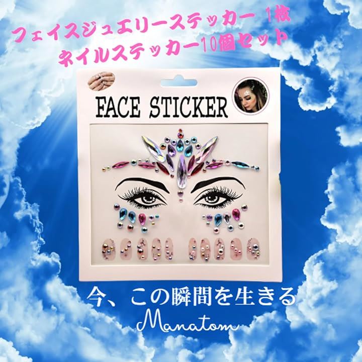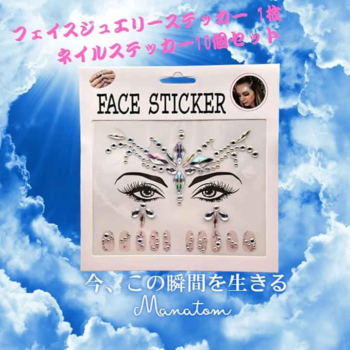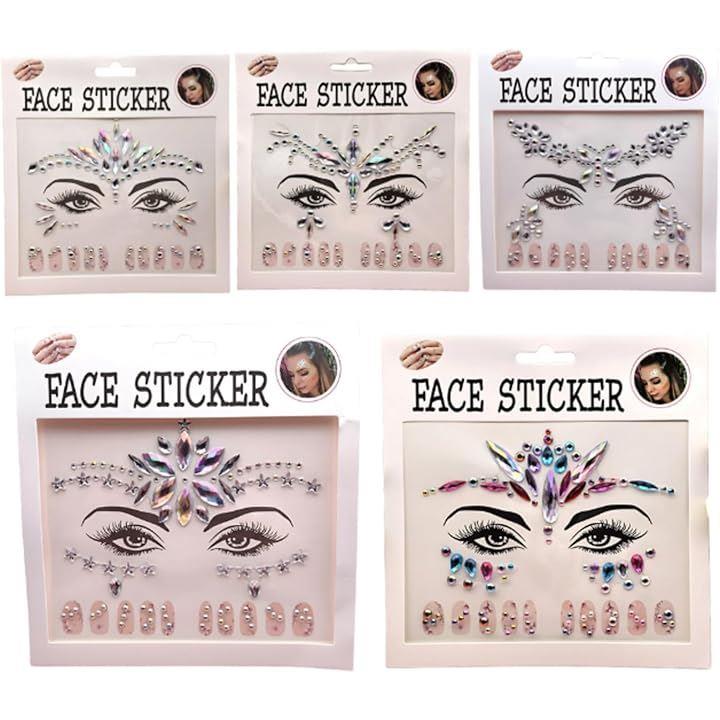 フェイスシール キラキラ フェイスジュエリーステッカー 1枚 + ネイルステッカー10個セット5種類
